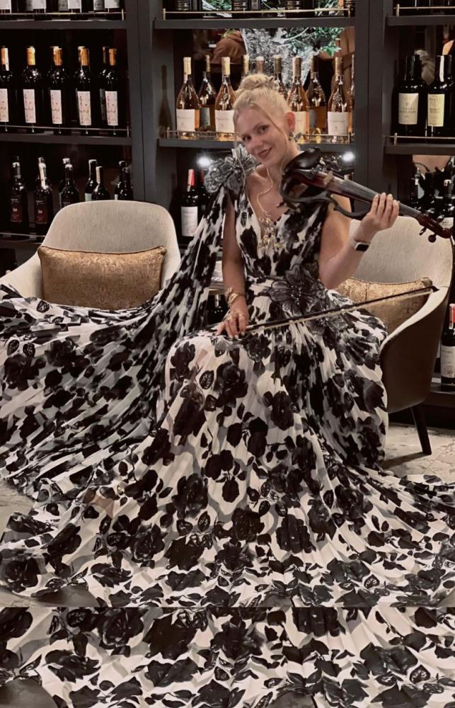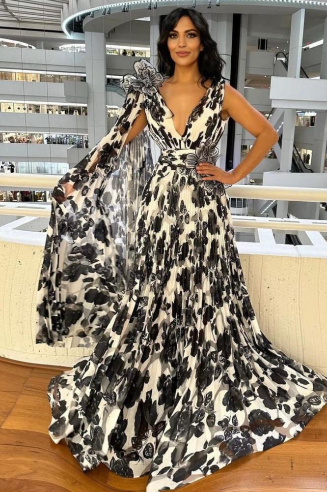 فستان سهره بيليسيه اسود وابيض مطرز بالاسود